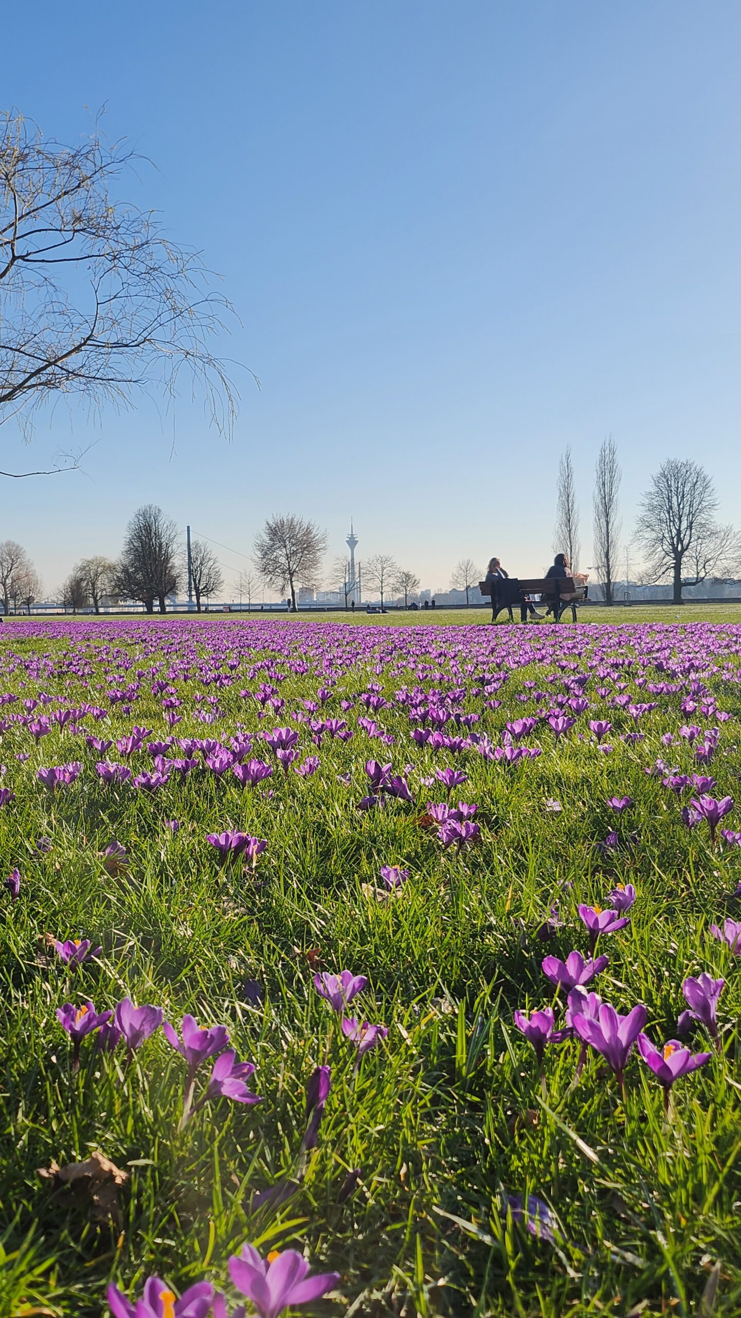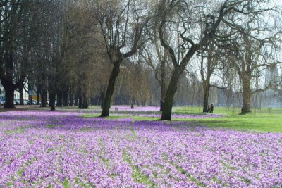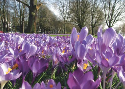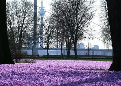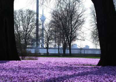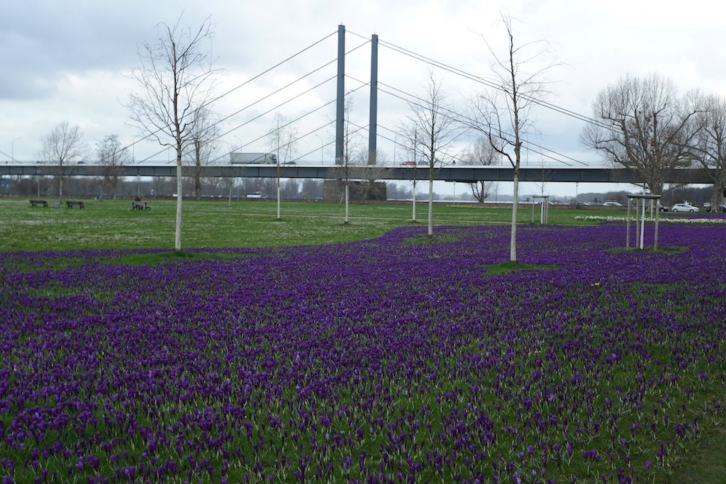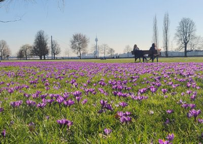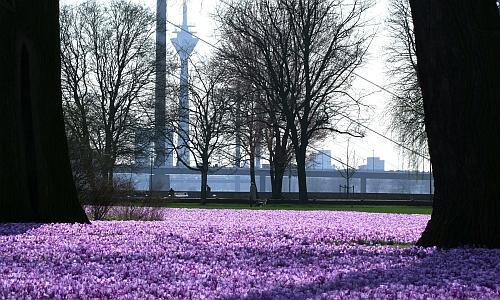 Düsseldorf begrüßt seit 2009 den Frühling mit einem Band aus blau-violetten Krokussen entlang des Rheins.