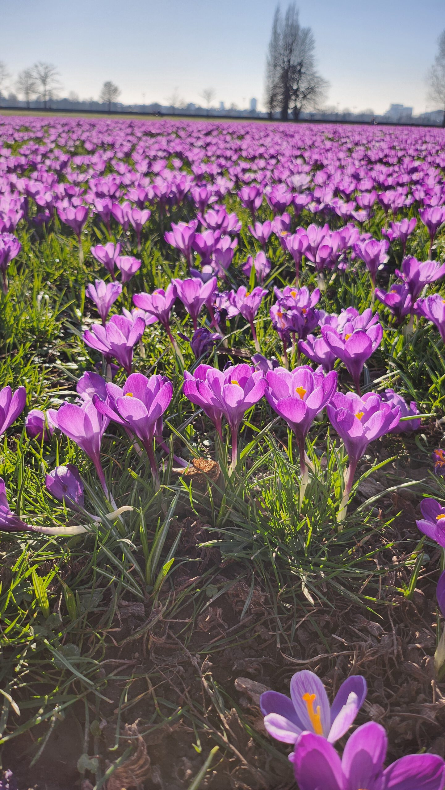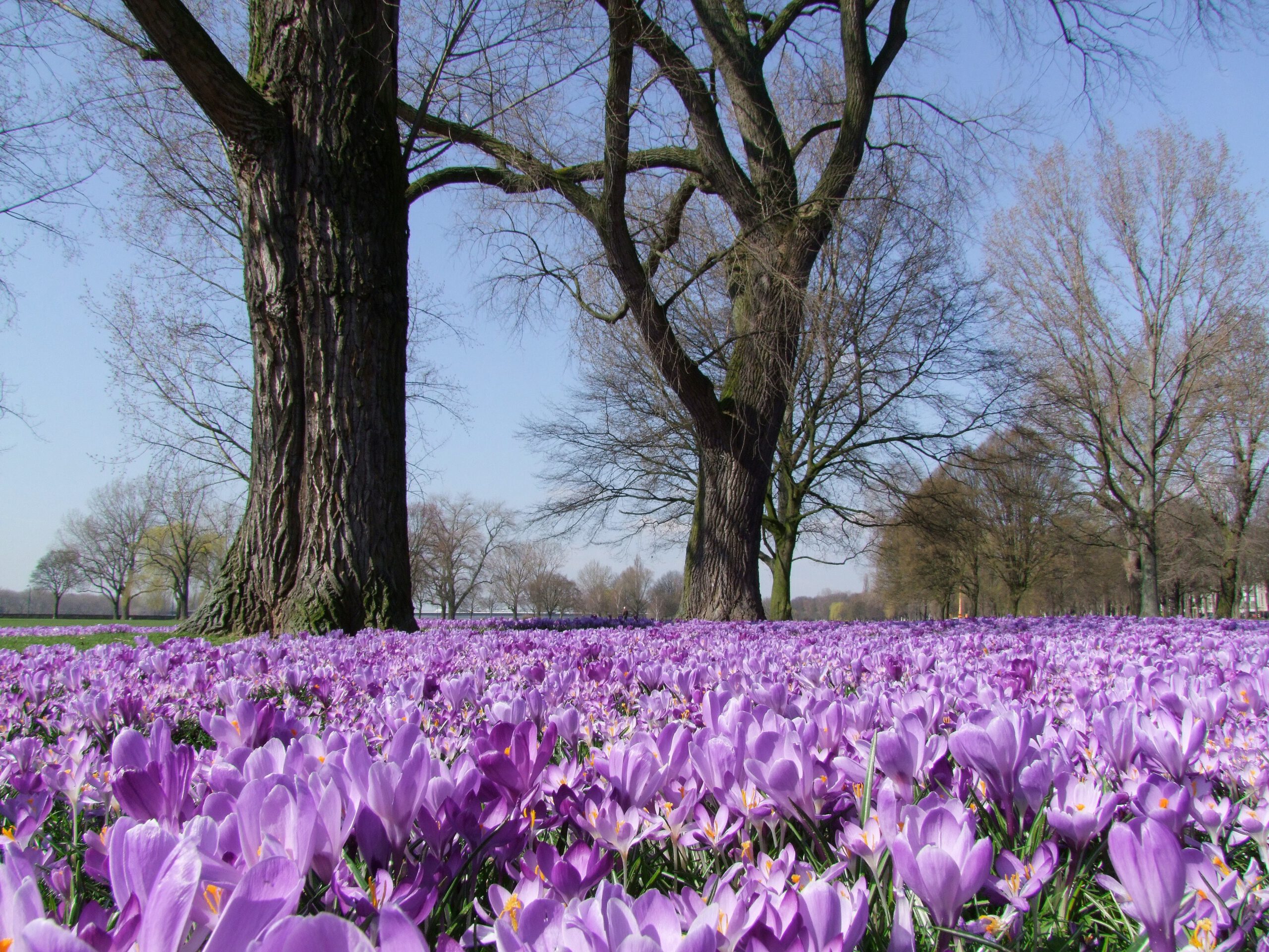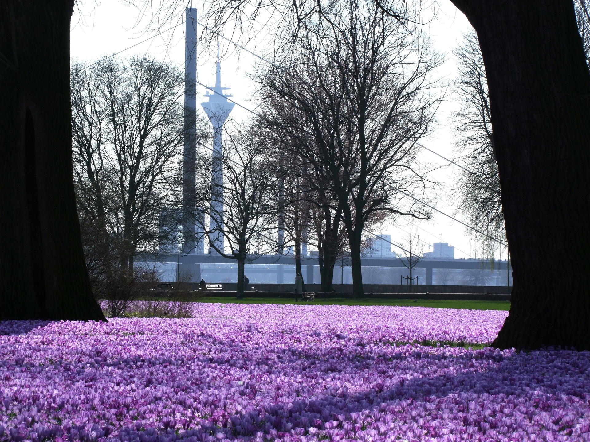 Düsseldorf begrüßt seit 2009 den Frühling mit einem Band aus blau-violetten Krokussen entlang des Rheins.
