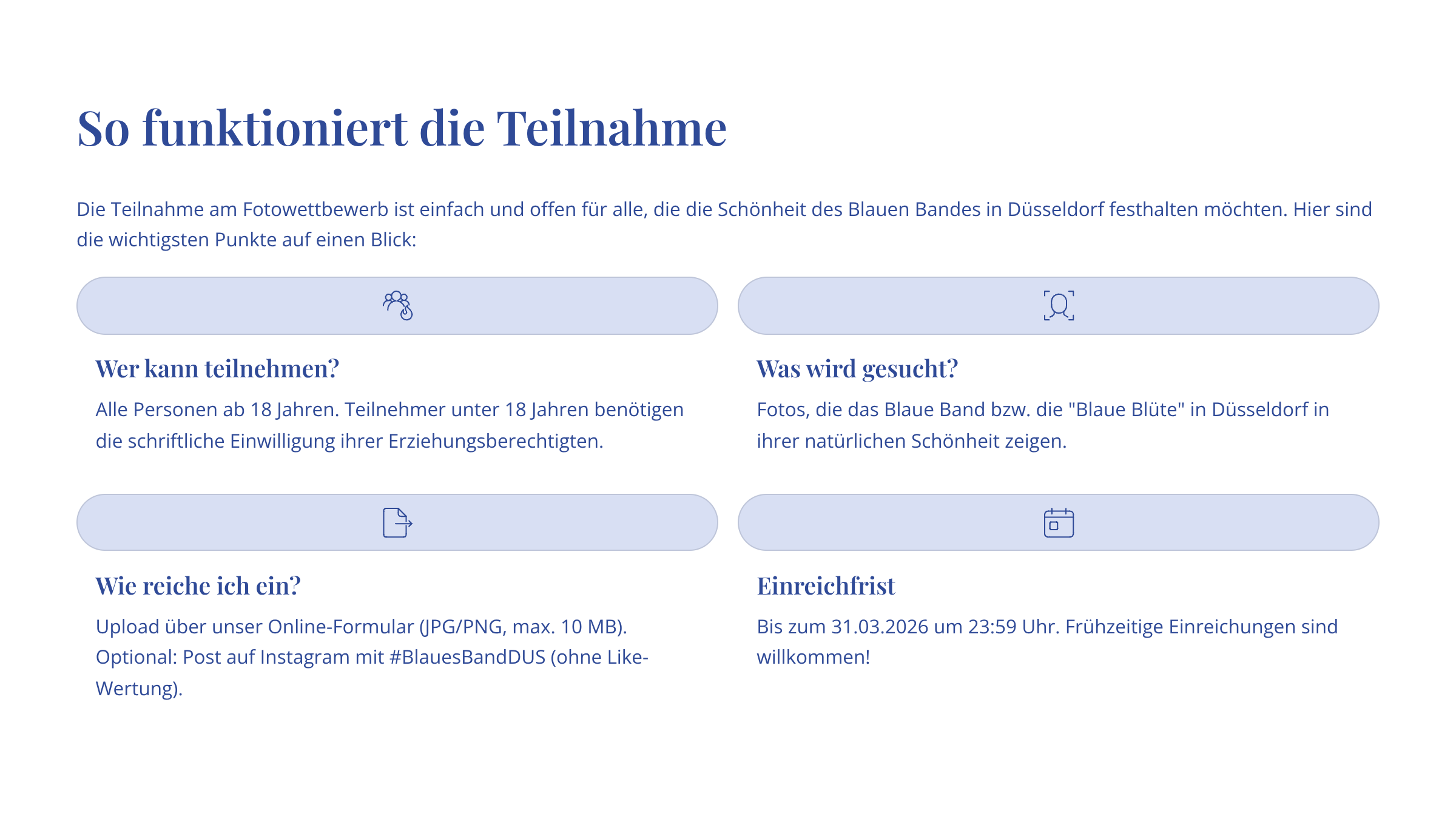 Wenn Düsseldorf blau aufblüht, seid ihr die Augen der Stadt: Der Blue Bloom Award zeigt die schönsten Krokus-Momente – von feinen Makros bis zu urbanen Weitblicken. Start Frühjahr 2026.