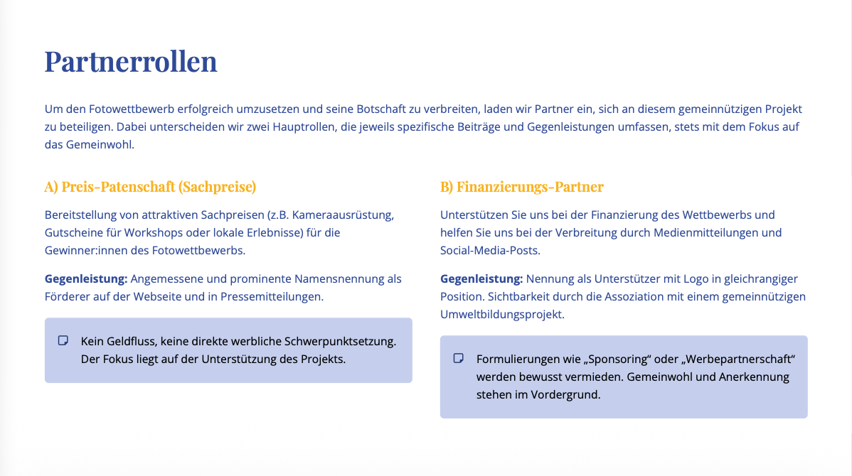 - Glaubwürdige Sichtbarkeit: Sie werden als Förderer eines gemeinnützigen Projekts wahrgenommen, nicht als Absender einer Werbekampagne.